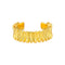 Crafted from brass and plated with 14K gold, this open cuff bracelet features a sculpted ripple texture inspired by natural equisetum stems. Its polished finish adds a soft metallic glow, balancing bold design with minimalist elegance. Suitable for both men and women, this unisex piece is perfect for everyday styling or as a refined statement accessory.